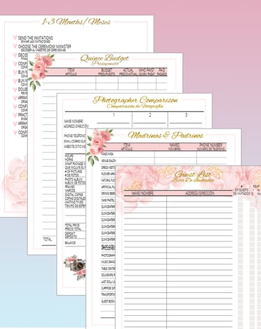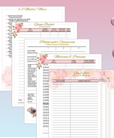 I want to express my heartfelt dedication and commitment to crafting these planners specifically to assist you in planning your XV. Countless hours of time and immense effort have been invested to ensure that every aspect of this planner is tailored to make your celebration truly memorable and special. Let's embark on this journey together and make your quince a beautiful & cherished experience.